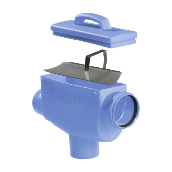 A SlimRain 100 esővíz szűrő rozsdamentes vízszintes szűrőbetéttel rendelkezik. A levelek, a moha és a vízben oldott egyéb anyagok egyszerűen távoznak a szennyezettvíz kifolyónyiláson át. Az egyedülálló formatervezésnek köszönhetően ritkábban kell karbantartani, mint más csapadékvíz szűrőket. A csőátmérő végig egyenletes a szűrőben, ezért még egy teniszlabda méretű szennyeződés is akadálytalanul áthaladhat